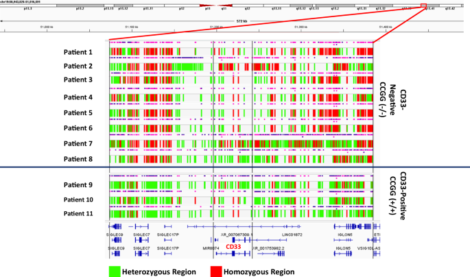 Papageorgiou I, Loken MR, Brodersen LE, Gbadamosi M, Uy GL, Meshinchi S, et al. CCGG deletion (rs201074739) in CD33 results in premature termination codon and complete loss of CD33 expression: another key variant with potential impact on response to CD33-directed agents. Leuk Lymphoma. 2019;60:2287–90.