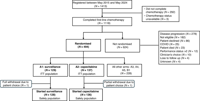 Lee GJ, Kim H, Cho SS, Park HS, An HJ, Woo IS, et al. A randomized phase III study of patients with advanced gastric adenocarcinoma without progression after six cycles of XELOX (Capecitabine Plus Oxaliplatin) Followed by Capecitabine Maintenance or Clinical Observation. J Gastric Cancer. 2023;23:315.