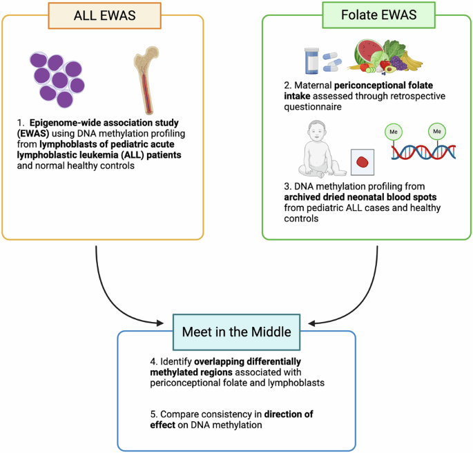Nickels EM, Li S, Morimoto L, Kang AY, de Smith AJ, Metayer C, et al. Periconceptional folate intake influences DNA methylation at birth based on dietary source in an analysis of pediatric acute lymphoblastic leukemia cases and controls. Am J Clin Nutr. 2022;116:1553–64.